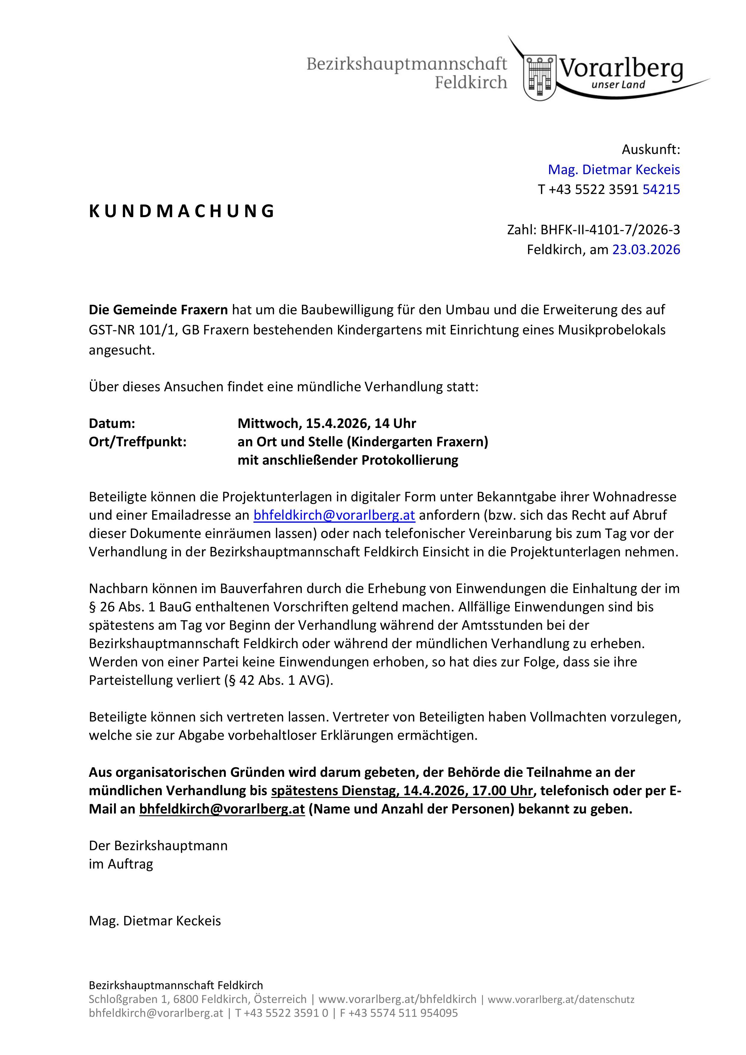 Kundmachung Bauverhandlung 15.04.2026